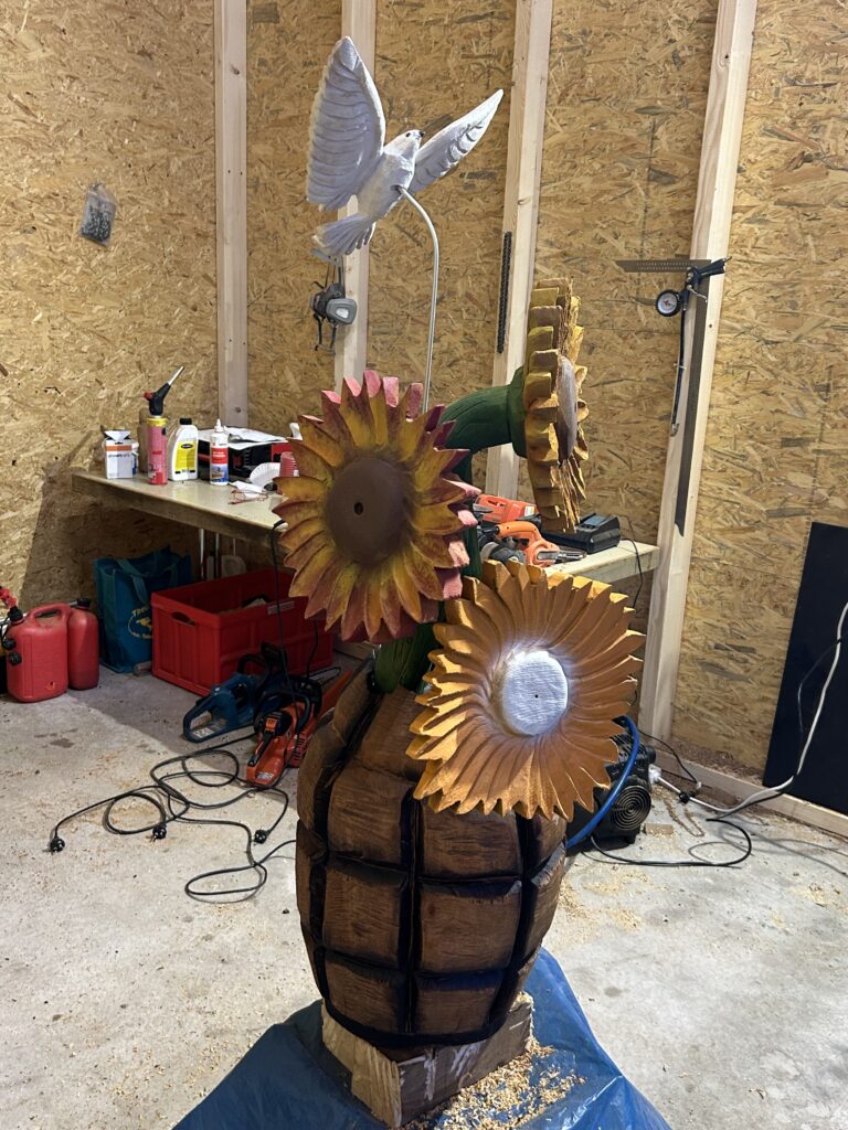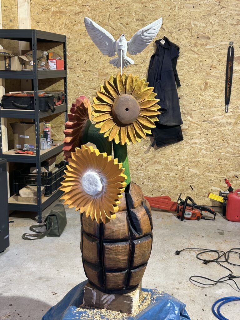 Die beiden Bilder auf der rechten Seite stellen eine Friedensgranate da.